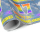 This eye-catching, vibrant, and exciting birthday-themed wrapping paper design features a blue sky with clouds pattern background, a large number "17" and "HAPPY BIRTHDAY," both having a multicolored rainbow spectrum inspired gradient pattern, and a customisable name. Happy and fun birthday themed wrapping paper like this might be a fun way to wrap a gift or present being given to celebrate somebody’s seventeenth birthday. [~Z0000372]