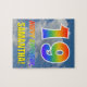 This fun, exciting, and eye-catching birthday-themed puzzle design features a blue sky with clouds pattern background, a large number "19" and "HAPPY BIRTHDAY," both having a multicolored rainbow spectrum inspired gradient pattern, and an editable name. A happy, colourful, and customisable birthday puzzle like this might be a fun way to acknowledge somebody’s nineteenth birthday. [~Z0000375]