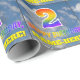 This eye-catching, vibrant, and fun birthday-themed wrapping paper design features a blue sky with clouds pattern background, a large number "2" and "HAPPY BIRTHDAY," both having a multicolored rainbow spectrum inspired gradient pattern, and a customisable name. Happy and colourful birthday themed wrapping paper like this might be a fun way to wrap a gift or present being given to somebody who is celebrating their 2nd birthday. [~Z0000372]