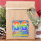 This fun, exciting, and eye-catching birthday-themed sticker design features a cloudy blue sky pattern background, a large number "36" and "HAPPY BIRTHDAY," both having a multicolored rainbow spectrum inspired gradient pattern, and a customisable name. Happy and fun stickers like this might be used when wrapping gifts being given to somebody who is celebrating their 36th birthday. [~Z0000374]