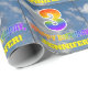 This vibrant, exciting, and eye-catching birthday-themed wrapping paper design features a blue sky with clouds pattern background, a large number "3" and "HAPPY BIRTHDAY," both having a multicolored rainbow spectrum inspired gradient pattern, and a custom name. Fun and colourful birthday themed wrapping paper like this might be a fun way to wrap a gift or present being given to somebody who is celebrating their third birthday. [~Z0000372]