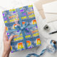 This eye-catching, exciting, and vibrant birthday-themed wrapping paper design features a cloudy blue sky pattern background, a large number "42" and "HAPPY BIRTHDAY," both having a multicolored rainbow spectrum inspired gradient pattern, and an editable name. Wrapping paper like this might be used when giving a gift or present in honour of somebody’s 42nd birthday. [~Z0000372]