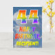 This fun and colourful 44th birthday greeting card design features a depiction of a cloudy blue sky, along with a large number "44" and the message "HAPPY BIRTHDAY," having a rainbow spectrum inspired gradient pattern colouring, on the front. The front also features the personalised name of the card’s recipient. The inside features a personalised birthday greeting message, or could perhaps be cleared and left blank if a message is to be written by hand instead. A customisable birthday card like this might be a fun way to send a message in celebration of somebody’s forty fourth birthday. [~Z0000371]