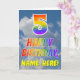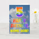 This fun and colourful 5th birthday greeting card design features a depiction of a blue sky with clouds, along with a large number "5" and the message "HAPPY BIRTHDAY," having a rainbow spectrum inspired gradient pattern colouring, on the front. The front also features the personalised name of the card’s recipient. The inside features an editable birthday greeting message, or could perhaps be cleared and left blank if a message is to be written by hand instead. A personalised birthday card like this might be a fun way to send birthday wishes to somebody who is celebrating their fifth birthday. [~Z0000371]