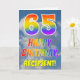 This fun and colourful 65th birthday greeting card design features a depiction of a clouded blue sky, along with a large number "65" and the message "HAPPY BIRTHDAY," having a rainbow spectrum inspired gradient pattern colouring, on the front. The front also features the customisable name of the card’s recipient. The inside features a personalised birthday greeting message, or could perhaps be cleared and left blank if a message is to be written by hand instead. A personalised birthday card like this might be a fun way to send birthday wishes to somebody who is celebrating their sixty fifth birthday. [~Z0000371]