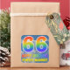 This eye-catching, exciting, and vibrant birthday-themed sticker design features a blue sky with clouds pattern background, a large number "66" and "HAPPY BIRTHDAY," both having a multicolored rainbow spectrum inspired gradient pattern, and a customisable name. Fun and colourful stickers like this might be used when wrapping gifts being given in celebration of somebody’s 66th birthday. [~Z0000374]