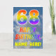 This fun and colourful 68th birthday greeting card design features a depiction of a blue sky with clouds, along with a large number "68" and the message "HAPPY BIRTHDAY," having a rainbow spectrum inspired gradient pattern colouring, on the front. The front also features an editable recipient name. The inside features a personalised birthday greeting message, or could perhaps be cleared and left blank if a message is to be written by hand instead. A custom birthday card like this might be a fun way to send birthday wishes to somebody who is celebrating their sixty-eighth birthday. [~Z0000371]