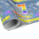 This eye-catching, exciting, and fun birthday-themed wrapping paper design features a blue sky with clouds pattern background, a large number "7" and "HAPPY BIRTHDAY," both having a multicolored rainbow spectrum inspired gradient pattern, and a customisable name. Birthday themed wrapping paper like this might be a fun way to wrap a gift or present being given to somebody who is celebrating their seventh birthday. [~Z0000372]