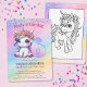 Make your little one's 6th birthday extra magical with this whimsicle rainbow unicorn-themed invitation! Featuring a sweet pastel unicorn and sparkling accents, it’s the perfect way to set the tone for a whimsical celebration. A large rainbow coloured "6" and this cute chibi unicorn with a crown of flowers take centre stage on this adorable invitation card. Printed with a bonus unicorn colouring page on the back to keep little guests entertained!