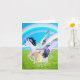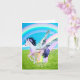 A digital painting of a colourful flying unicorn landing on grass after creating rainbows in the sky with her magic.