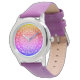 This fun watch is sure to be a favourite of any young girl or teen. There is a white lacy mandela on top of a rainbow style background of yellow, orange, red, pink, purple and blue. Watch is shown with a purple watch band but you can customise it with lots of other choices.