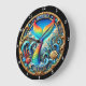 Dive into a whimsical world with this vibrant clock! Featuring a colourful rainbow mermaid tail emerging from the ocean waves, adorned with seashells and marine life. The gold-trimmed design adds a touch of elegance. Perfect for adding a splash of fantasy and fun to any room, especially for mermaid lovers and those seeking unique decor.