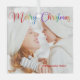 Beautiful rainbow Merry Christmas photo ornament with beautiful rainbow cursive typography. This modern holiday family photograph gift features gorgeous colorful script overlay and your name in red over the full bleed picture.