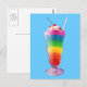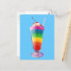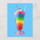 A kitchy, retro image of a milkshake with rainbow stripes.