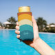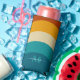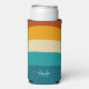 Rainbow Monogram Custom Name Retro Sunset Stripe Seltzer Can Cooler