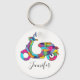 This personalised keychain is perfect for keeping the keys to your moped secure. The custom keychain features an illustration of a classic motorised scooter in bright, rainbow colours in a fun painted style. Your name is below in modern black, script lettering. This keychain makes a fun gift for new scooter owners.