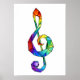 Polygonal, rainbow, bright musical key on white background. Polygon tattoo. Treble clef