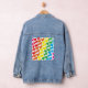 A cute multicolor rainbow musical notes pattern eighties inspired retro aesthetic stationery style music lover adorable happy design denim jean jacket. Get a cute and colourful notes denim jean jacket today.