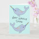A cute rainbow narwhal "Get Whale Soon" card. The cartoon narwhals have rainbow spots and horns.