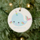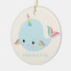 Rainbow Narwhal Kawaii Pattern Pastel Blue Name Ceramic Ornament