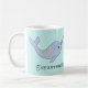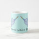 Each side has a cute narwhal with a rainbow horn and spots. "Everything Whale Be Okay" is wrapped around the mug.