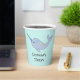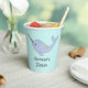 A cute rainbow narwhal with space for custom words on a light sea blue background. The whale design is repeated on the front and back.