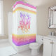 “Beach life”. Whenever you shower with this seaside shower curtain, you can be rest assured the summer seashore fun will continue. A graphic, rainbow yellow, orange, pink, and purple ombre vintage octopus overlays a white background with sandy textured rainbow stripes. Great for the family beach house, your nautical lifestyle, or just to bring a bit of the beach into your home all year round!