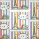 Ahhhh, what could be better than Paris in the Spring? Celebrate all that is Paris with this novelty fabric design featuring a purple waving flag atop the Eiffel Tower and a half dozen colourful pastel macarons resting at the base. A boutique style sign on gold look chains touts the city name (which can be personalised). All on a pastel striped background. Original illustration and design by Holiday Hearts Designs.