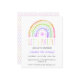 Customisable rainbow birthday party paper invitation, featuring a colourful rainbow and polka dots, in tones of violet, blue, purple, yellow, orange, green and pink on a background of clean white. This is an affordable paper invitation. You are welcome to visit our store Peony Designs to purchase this invitation on card or as a downloadable digital.