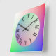 Rainbow Pastel Colours, Roman Numeral Hour Markers Square Wall Clock