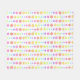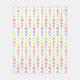 A pattern of rainbow circles in pastel multi colours. They are all in different shapes and sizes, and arranged into a retro look pattern.