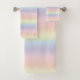 Here is a lovely, soft set of bath towels in pastel rainbow colours.