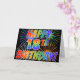 The front of this exciting, eye-catching and vibrant greeting card design features a colourful celebratory fireworks inspired pattern, along with the message "HAPPY 18TH BIRTHDAY!" having a multicolored rainbow inspired gradient pattern, on a black coloured background. The inside features a customisable greeting message, or could perhaps be cleared and left blank if it is desired to write a message by hand instead. A greeting card like this might be fun to send to somebody celebrating their 18th birthday. [~Z0000355]