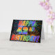 The front of this fun, vibrant and exciting greeting card design features a colorful celebratory fireworks inspired pattern, along with the message "HAPPY 42ND BIRTHDAY!" having a multicolored rainbow inspired gradient pattern, on a black colored background. The inside features a customized greeting message, or could perhaps be cleared and left blank if a message is to be written by hand instead. A greeting card like this might be a happy, fun way of sending a birthday greeting message to somebody who is celebrating their 42nd birthday. [~Z0000355]