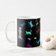 A cute mug by Blue Sands Studio. Features a multi-colored pattern of cats on a black This coffee cup will be a wonderful addition to your home or work place. A great gift for family and friends, who love their cats. Edit the text to your liking. For custom orders, message me on Zazzle