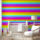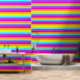 Pink, Yellow, Purple and Red Rainbow stripes patterned wallpaper.