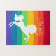 Rainbow Pattern White Unicorn Personalised Custom Jigsaw Puzzle