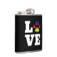 The flask itself is fine. It’s a cheap flask, obviously bought in bulk, however am prepared to overlook that. Given that it is a personalized item, I would have liked to have seen gift boxing instead of the generic packaging. Terrible printing, and/or quality. It’s a cheap, tacky vinyl. It is not cut straight and is also applied in a way that it is overhanging the bottom, causing the glue to catch on items and it will eventually roll and tear, damaging the wrap.