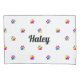 This custom pillow case has cute paw prints with rainbow stripes in bold red, orange, yellow, green, blue and purple. Personalise this pillow case with your name or a text of your choosing. This would be great for those who love rainbows, dog lovers, cat lovers, animal lovers, etc.