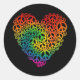 An image of peace, love and diversity. A heart is made of peace symbols in rainbow colours.