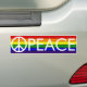 A rainbow bumper sticker with a peace sign and the word Peace across it.