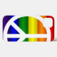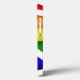 A rainbow coloured pride flag with a peace sign on a phone case.