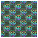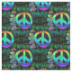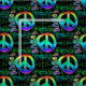 Pattern of rainbow peace symbols with the word "peace" against a dark background.