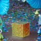 A gorgeous swirling marble pattern reminiscent of peacock feathers or paisley, in all the colours of the rainbow.