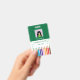 A green and white photo ID badge with the doodle of colored pencils at the bottom . This identification card was professionally designed for preschool , kindergarten , elementary school , middle or high school teachers . They're also perfect for school librarians . They are available in several colorways . See the collections for more choices . The template makes it easy to fill it with the teachers own info and picture .