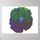This grungy poster features a photograph of a petunia flower that has been manipulated to make the centre of the flower blue. The rest of the flower has shades of purple, green and blue, giving it the appearance of a grungy rainbow flower.