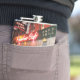 The flask itself is fine. It’s a cheap flask, obviously bought in bulk, however am prepared to overlook that. Given that it is a personalized item, I would have liked to have seen gift boxing instead of the generic packaging. Terrible printing, and/or quality. It’s a cheap, tacky vinyl. It is not cut straight and is also applied in a way that it is overhanging the bottom, causing the glue to catch on items and it will eventually roll and tear, damaging the wrap.