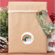 Happy and colourful rainbow transforms into piano keys as it springs forth from a musical fluffy cloud surrounded by music notes and colourful stars.