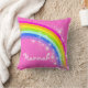 Colourful girls pink rainbow hues pillow designed by exclusively by Sarah Trett. Customise with the name of your choice, this example reads Hannah. Would be a great additional to kid's room or when several children are sharing.