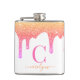 Rainbow Pink Peach Sparkle Glitter Drips Monogram Hip Flask